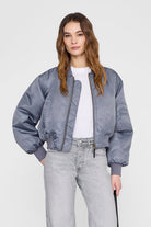 This cropped bomber silhouette is crafted from a durable, lightly padded shell with a subtle sheen for a refined utilitarian feel. Designed for everyday layering, this essential pairs effortlessly with denim, knits, and tailored separates.