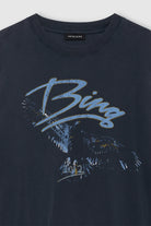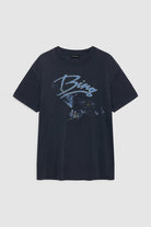 The Kent Tee Twisted Snake is an everyday basic made from lightweight jersey cotton jersey in washed black. This style features dropped shoulder seams for an oversized look. Finished with an ANINE BING graphic at the wearer's left chest and ANINE BING store locations with a faded white snake twisting across the back.