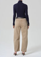 The Miro offers a refined take on the barrel silhouette, sitting high at the waist with a relaxed shape that softly tapers to the ankle. Crafted from rigid, non-stretch denim in a light to medium beige tone, it features an authentic hand and structured drape. Effortless and timeless—an elevated approach to everyday denim.