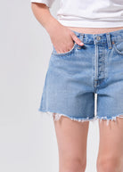 Looks Like: Light vintage indigo denim short