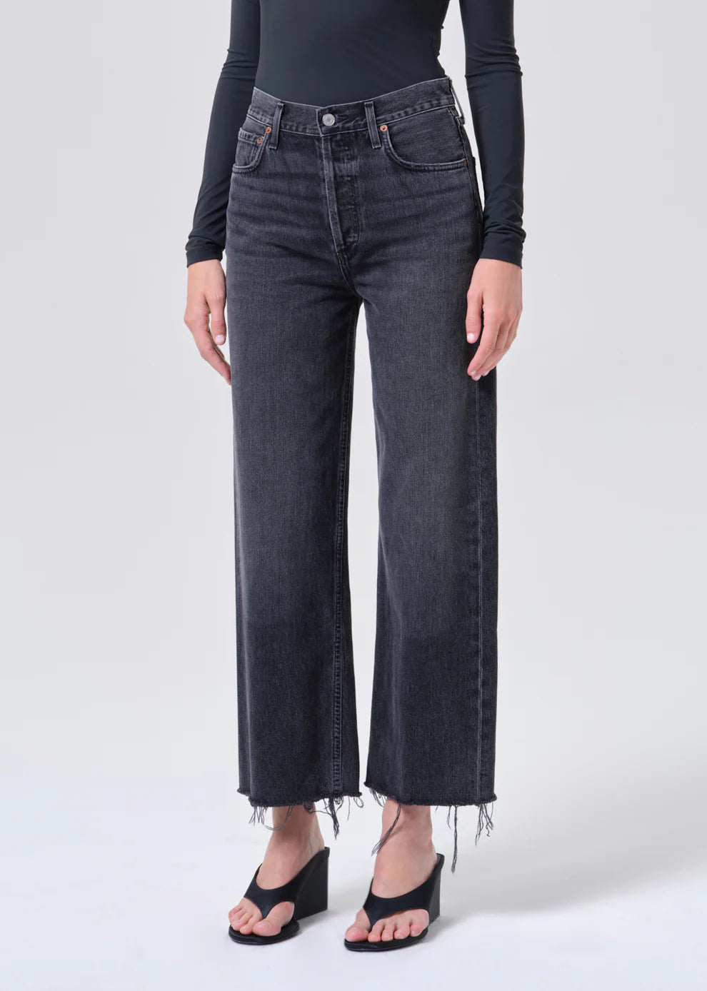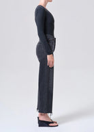 Looks Like: Dark worn in, washed out black denim pant