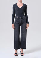A high-rise wide-leg silhouette, the Ren Jean is designed with a flattering high waist, a relaxed fit through the hips, and an elongated, easy leg shape. Finished in a dark worn-in black wash, it brings subtle depth and a naturally lived-in look to a clean, structured silhouette. Crafted from non stretch, weightless regenerative cotton denim washed down for a super soft feel, it drapes effortlessly while delivering all day comfort.