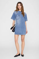 An effortless denim staple designed for everyday wear, the Tulah Dress blends laid-back ease with modern structure. Crafted from soft, medium-weight denim, this mini silhouette features a relaxed, straight fit with subtle seaming and a functional chest pocket for a utilitarian touch. Finished with short sleeves and a clean crew neckline, it’s the kind of throw-on-and-go piece you’ll reach for season after season.
