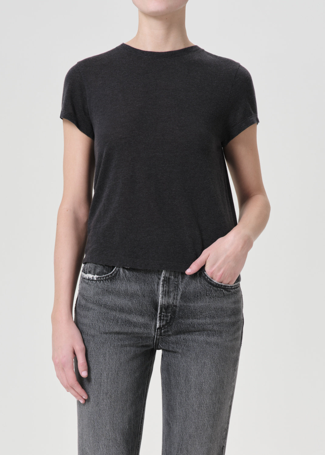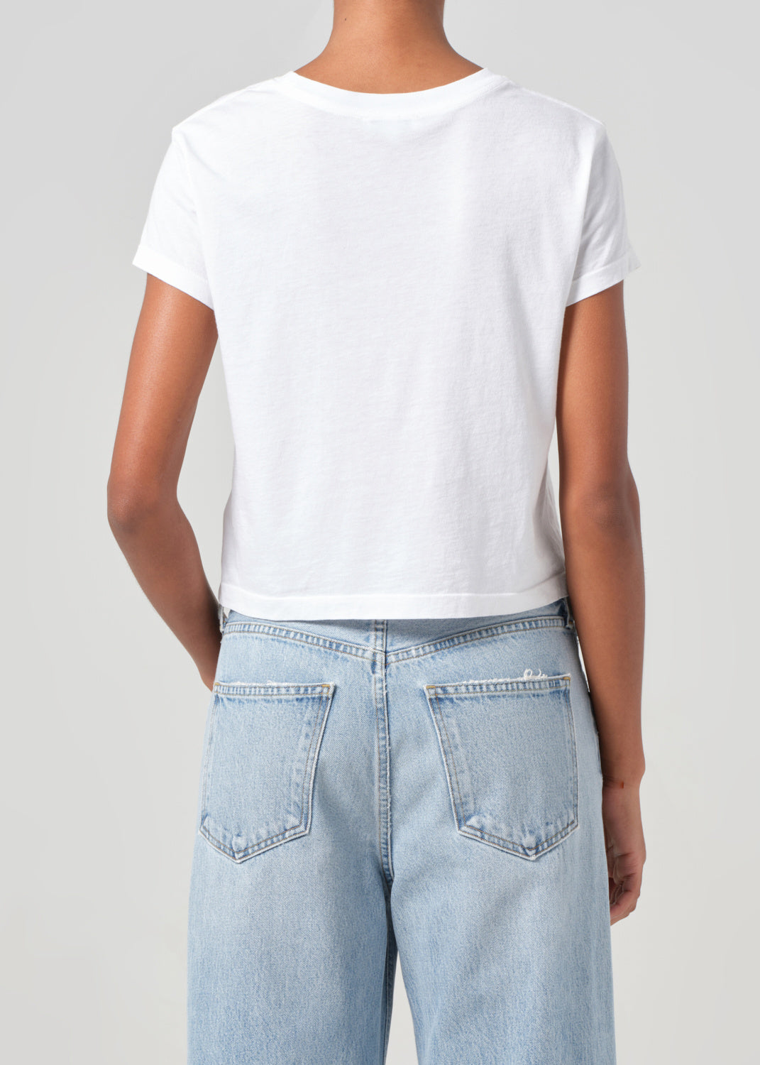 The Adine is a wardrobe essential, crafted from breathable, ultra-soft organic cotton. Perfect for wearing solo or layering, it pairs effortlessly with denim shorts or low-rise jeans for a timeless, flattering look.