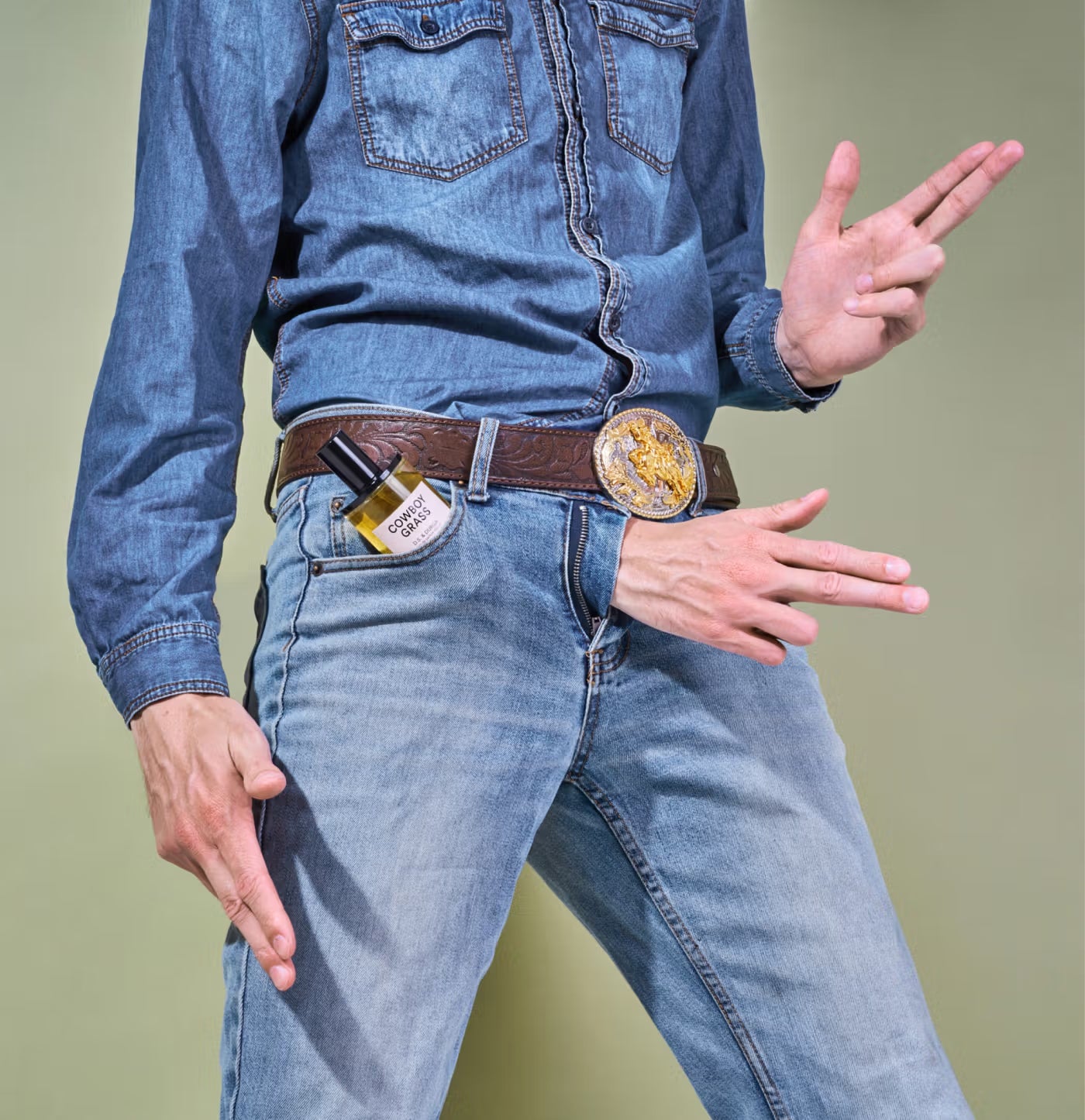 American sagebrush, flowering white thyme, and prairie switchgrass from the wild western territories. Perfect for robbing banks on horseback.