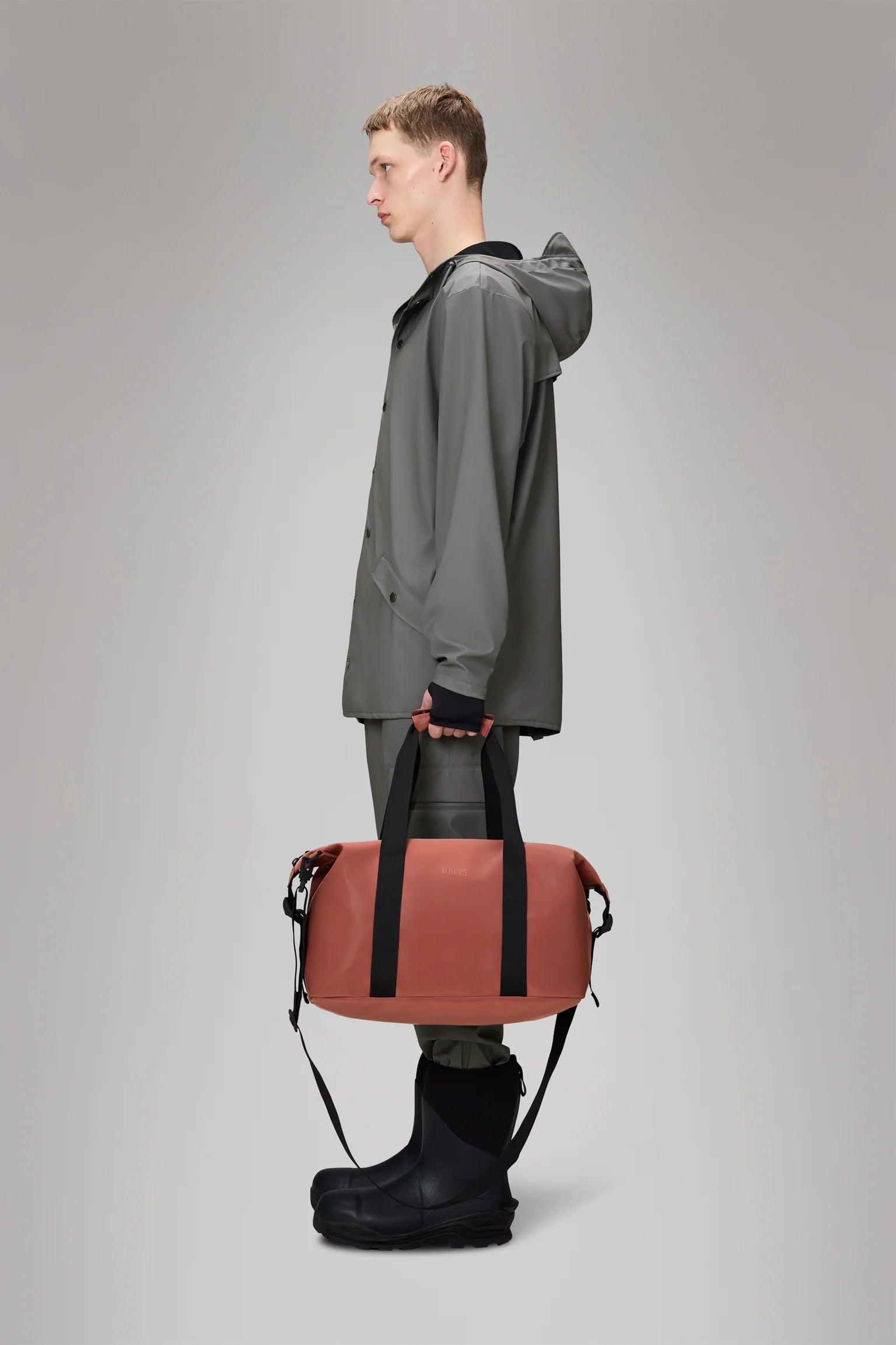 Hilo Weekend Bag Small is cut from Rains’ signature waterproof PU fabric, engineered for carrying strength, durability, and a smooth feel.